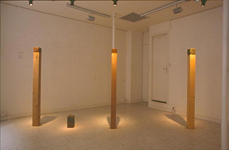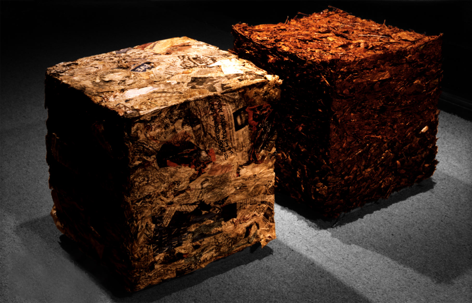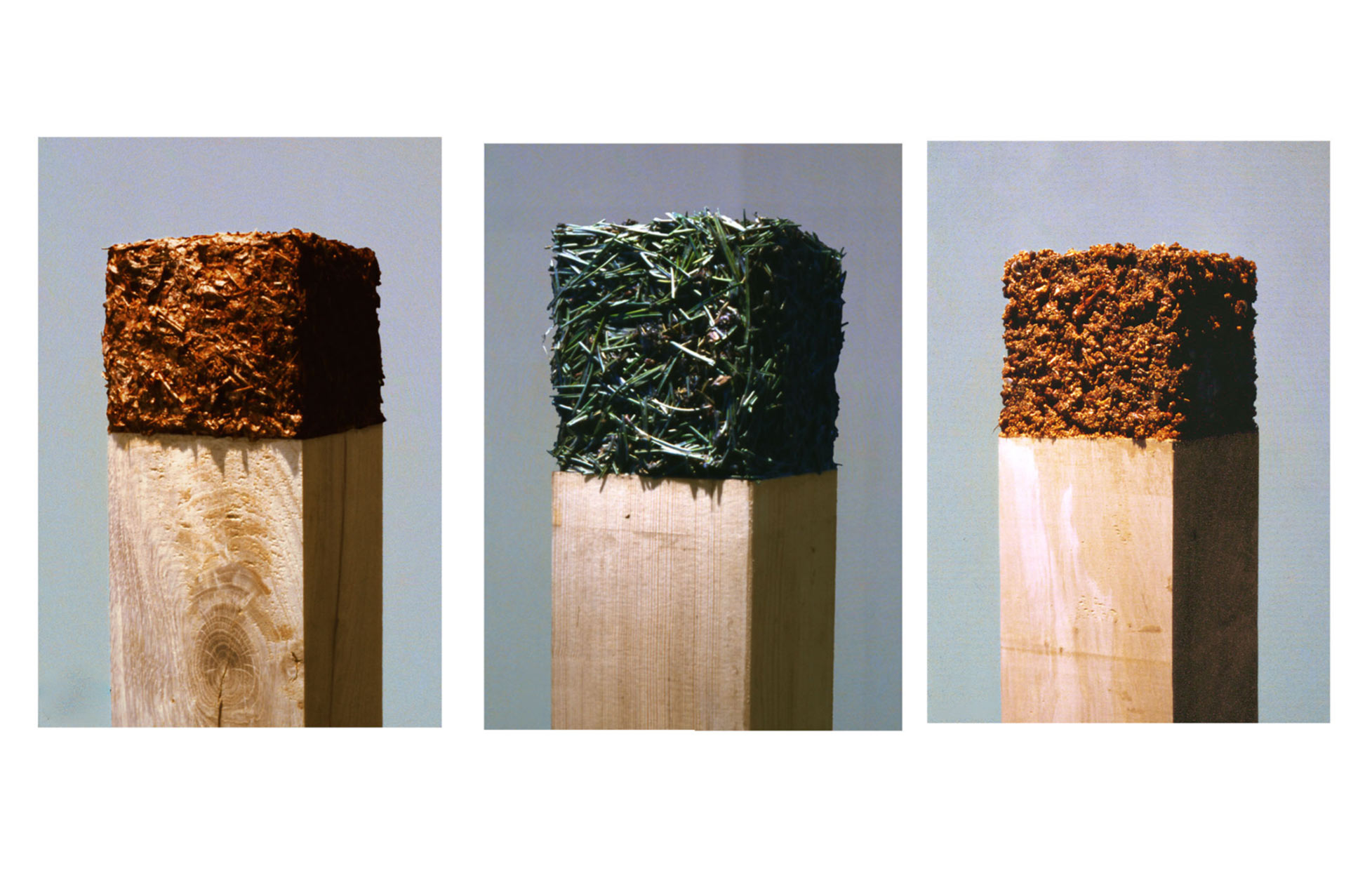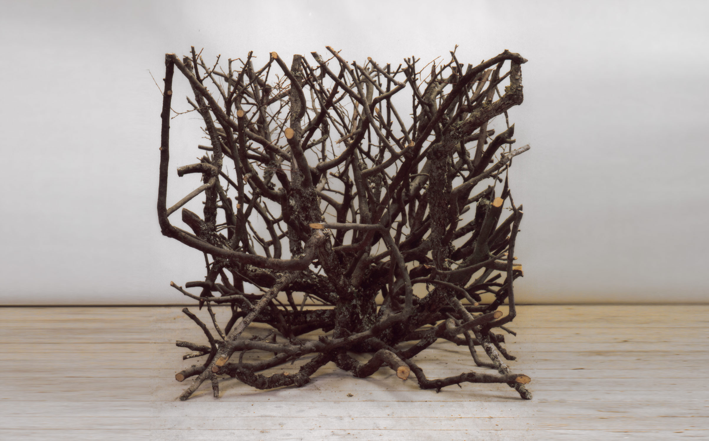 Cette série consiste en un ensemble de coffrages qui tentent de rationaliser les formes chaotiques de la nature (cube de feuilles mortes, arbres urbains). Parfois le raisonnement est poussé plus loin, jusqu’à l’abstraction, où, dans un geste inspiré du Pop Art, les éléments urbains contournent la nature et deviennent les nouveaux sujets (cubes de route, cube de piste cyclable, cube de passage piéton).