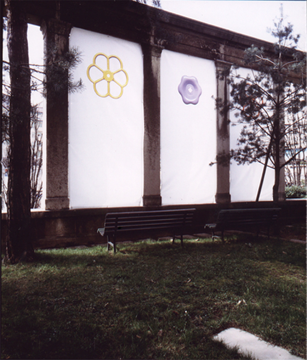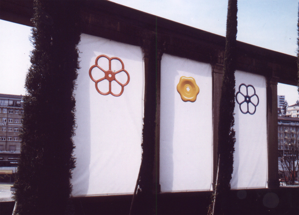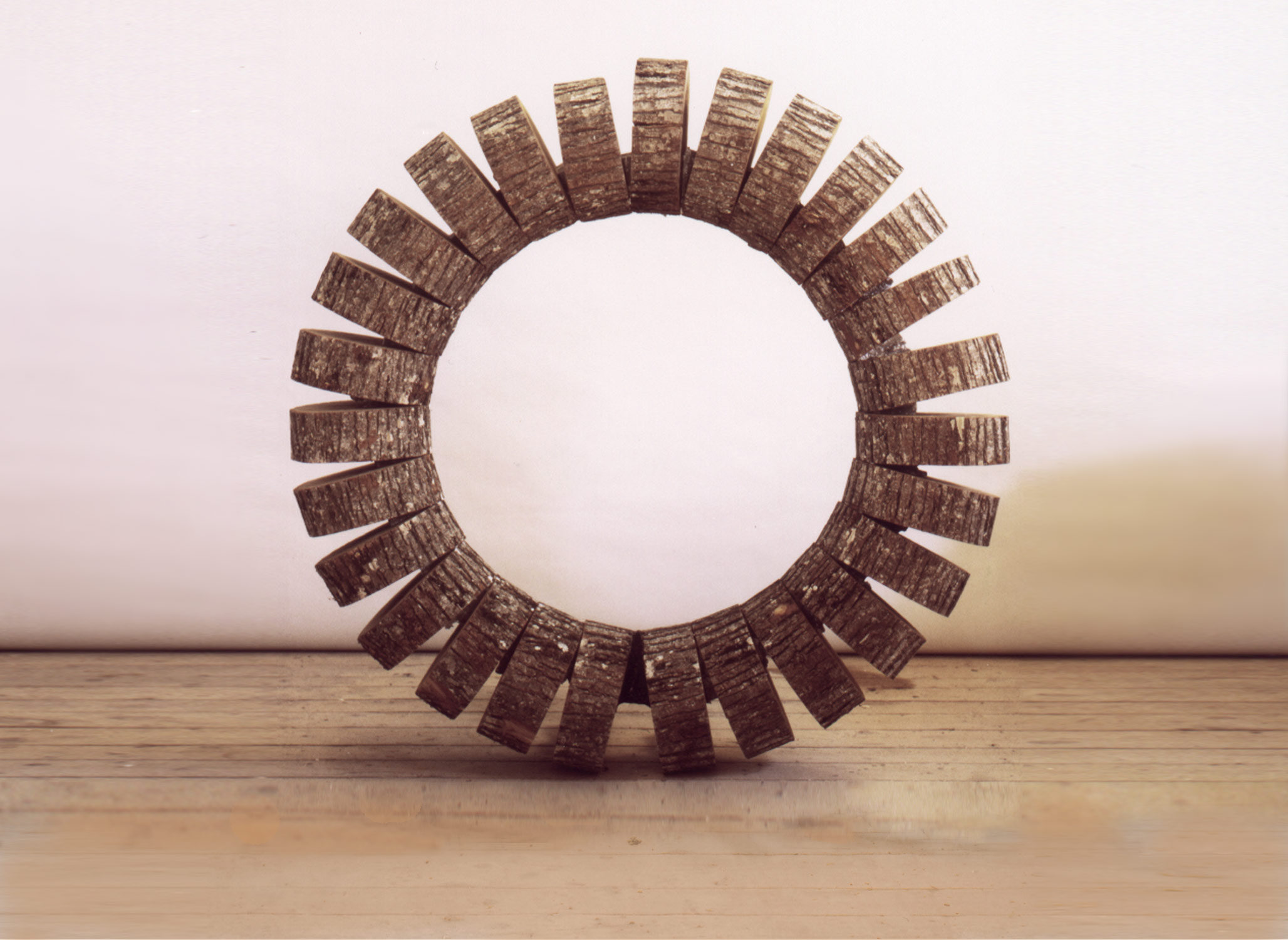 Selon le même principe, les objets et les installations de cette série urbaine mettent en composition dans un même objet un matériau naturel dans une composition urbaine (poirier carré, roue d’acacia, rocher lamellé) ou l’inverse, un matériau urbain reconstituant un élément naturel (fleurs de passage piéton, astre mécanique).