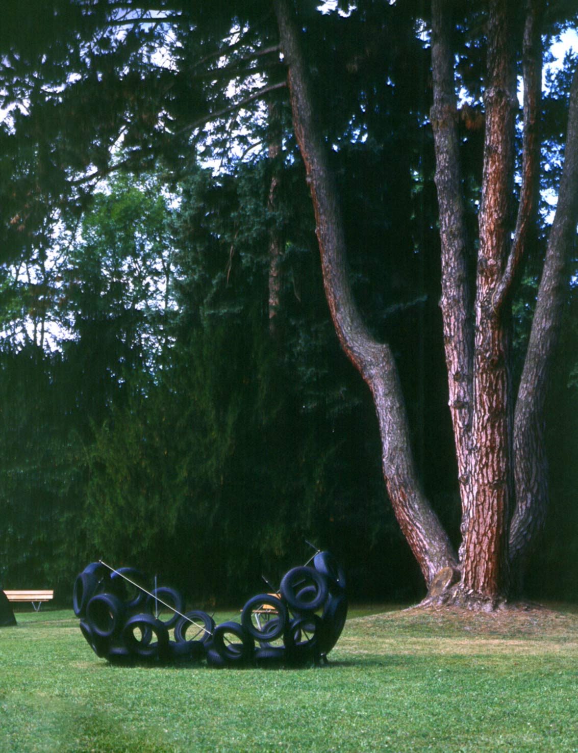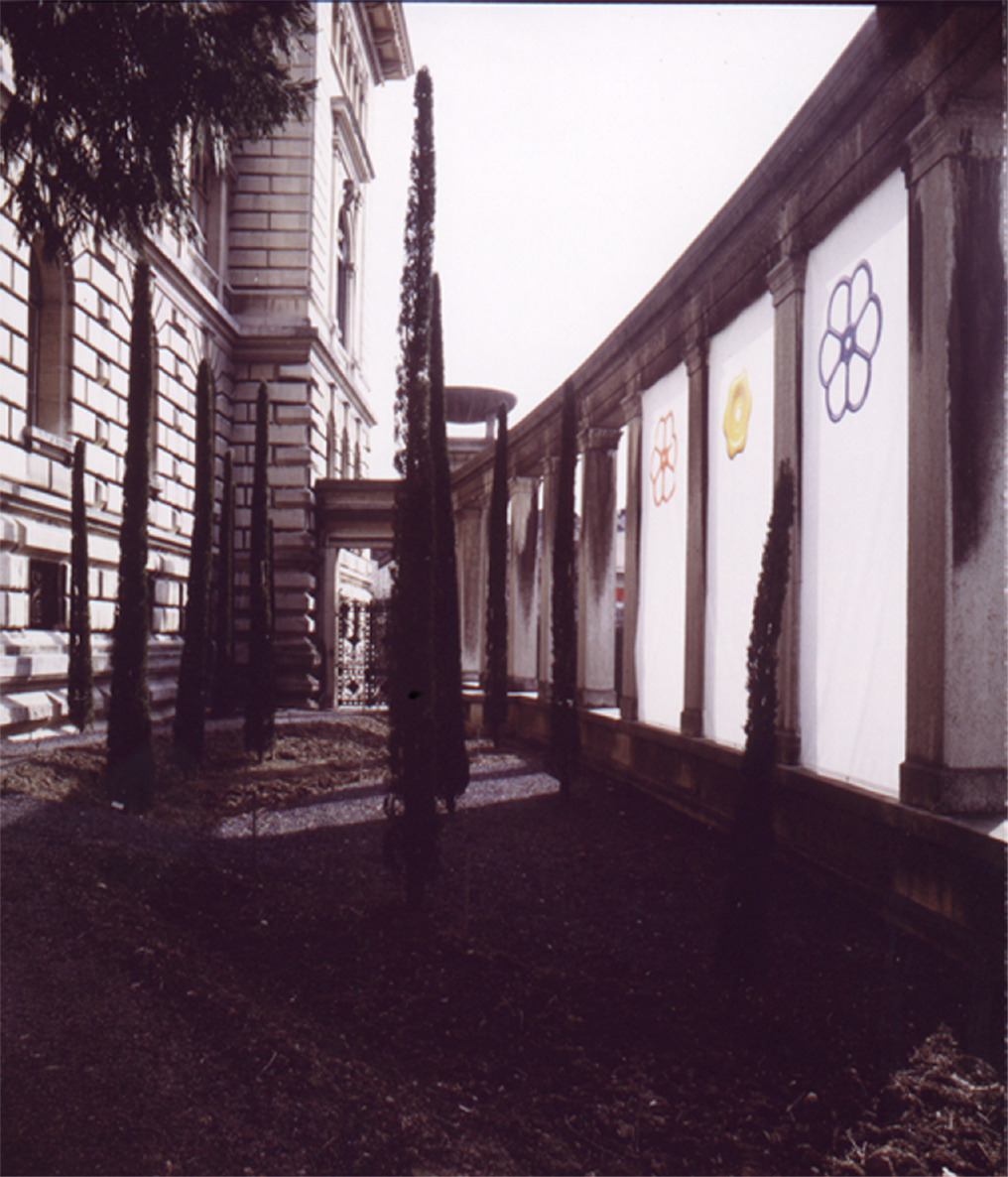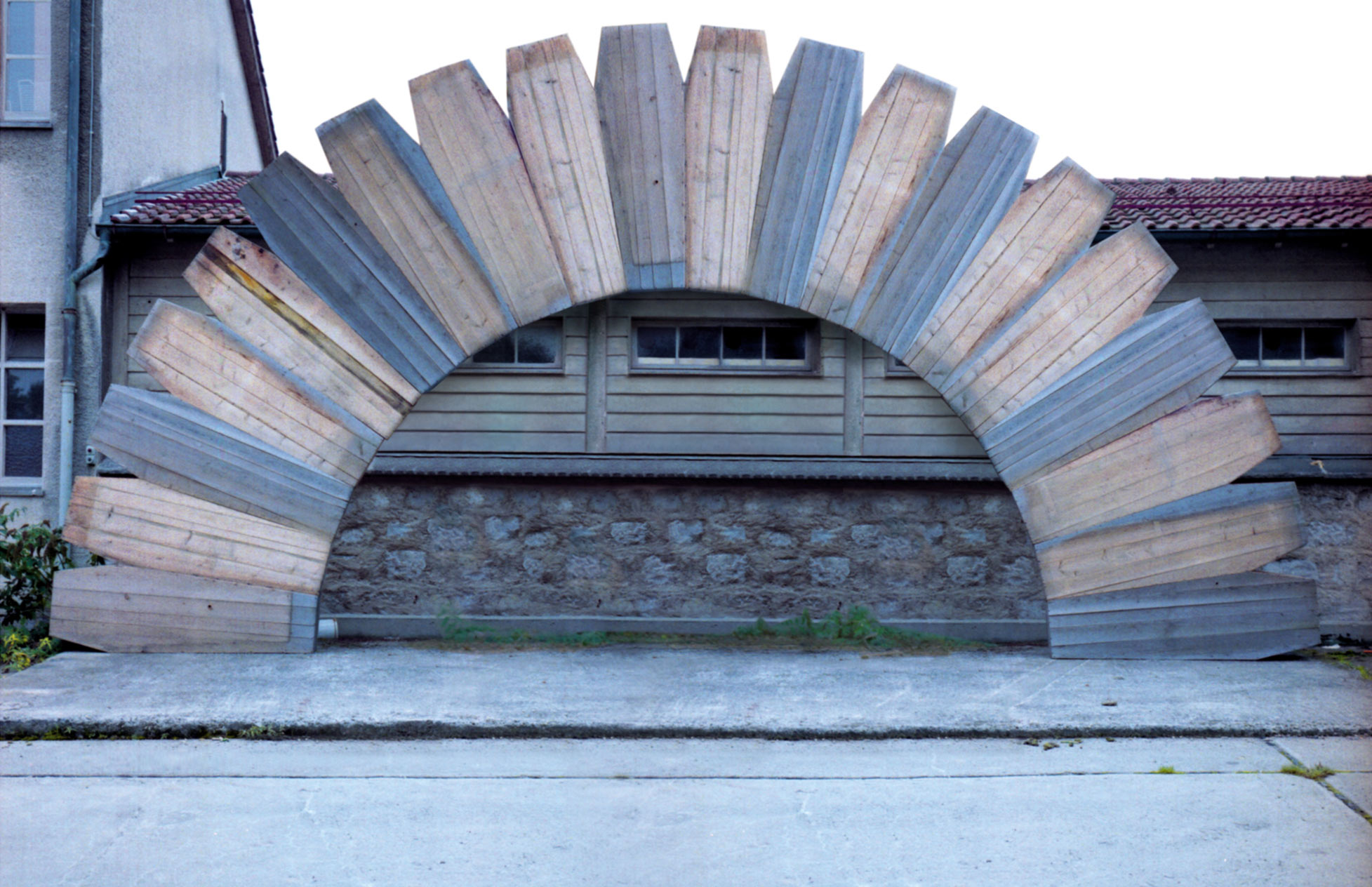 Selon le même principe, les objets et les installations de cette série urbaine mettent en composition dans un même objet un matériau naturel dans une composition urbaine (poirier carré, roue d’acacia, rocher lamellé) ou l’inverse, un matériau urbain reconstituant un élément naturel (fleurs de passage piéton, astre mécanique).